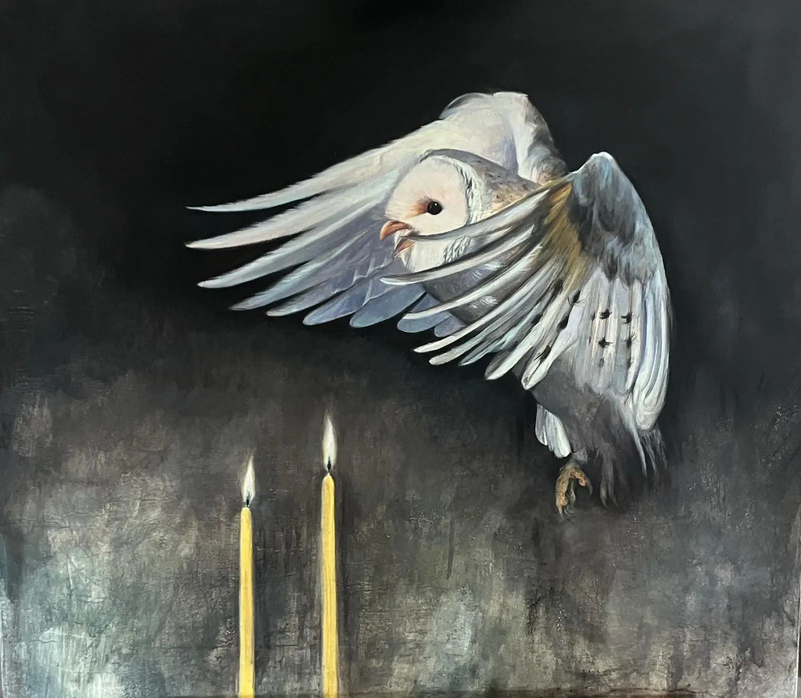 Il mondo a cui sono più affine è quello dei volatili, il quale è connesso all’uomo da sempre. Questa connessione trova le sue tracce ovunque nel mondo e in ogni cultura. Gli uccelli sono il ponte tra i mondi. Veicoli di messaggi dall’oltre. Questo mi ispira e mi ha sempre affascinato e soprattutto i rapaci notturni così come altre specie